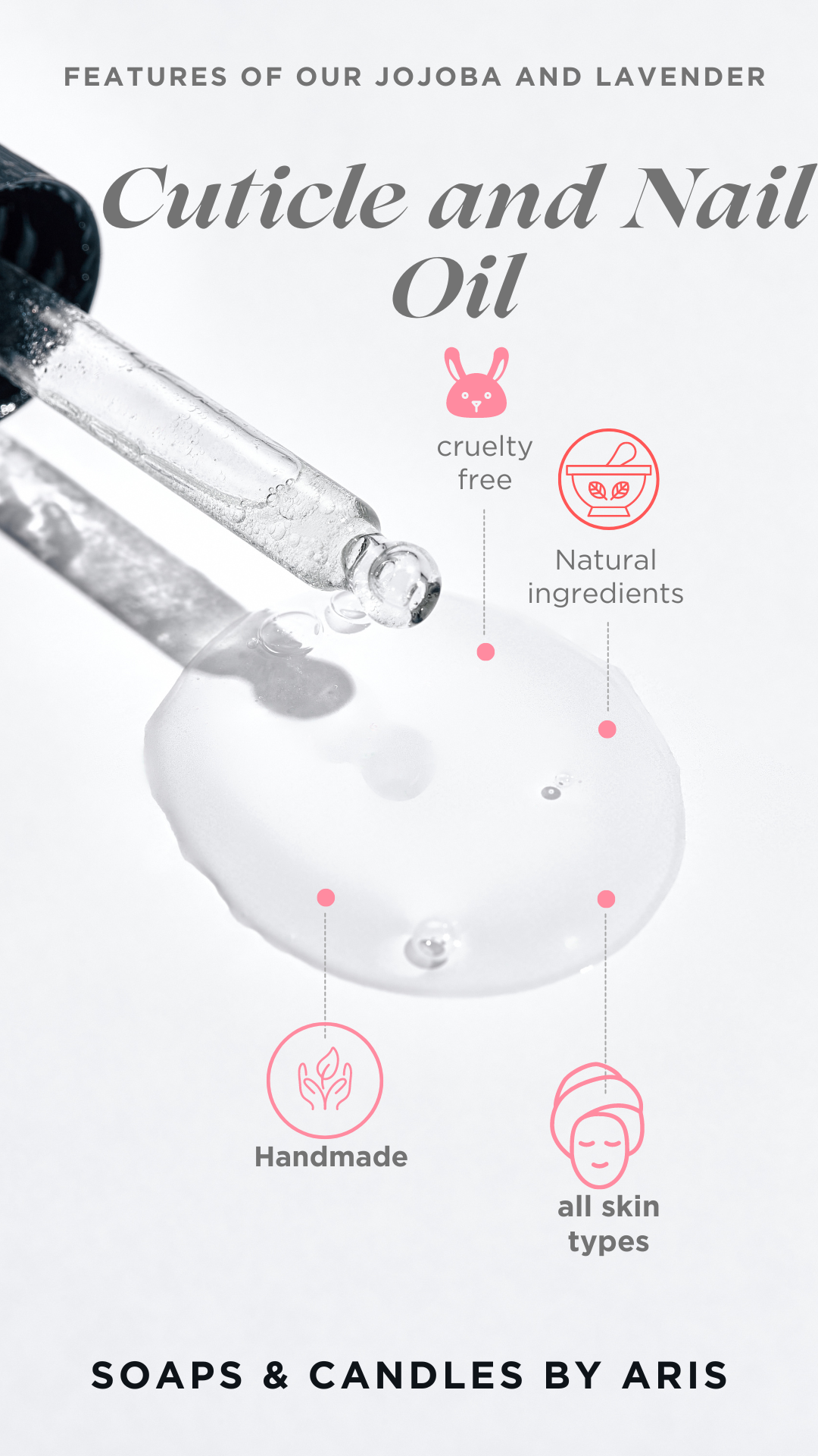 Infused with vitamin E and a therapeutic blend of lavender, tea tree, geranium, and lemon essential oils, this all-natural cuticle oil offers antifungal protection, encourages healthy nail growth, and soothes irritation. The refreshing, floral-citrus aroma turns your nail care ritual into a moment of self-care and luxury.