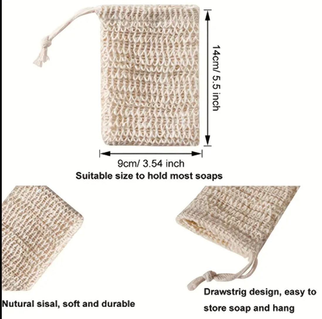 All of our body soap bars fit in the Sisal Soap Saver Bag.